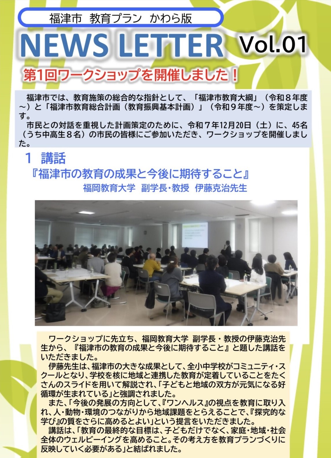 1. 講話「福津市の教育の成果と今後に期待すること」