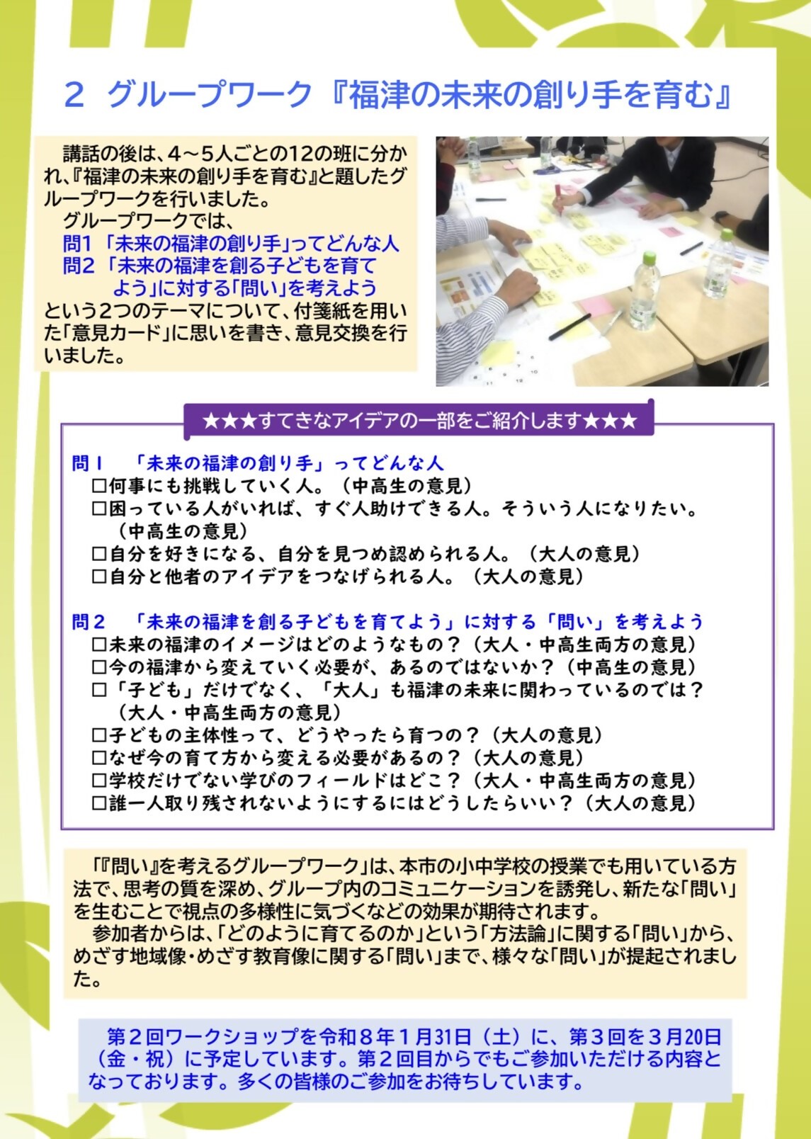 福津市の新しい教育プラン策定のためのワークショップ