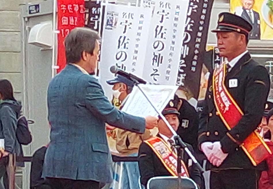 JR九州の各駅長がお薦めする麺商品の人気を競う「ご当地麺総選挙」の決選投票が11月23日に門司港駅前広場で開催され、JR福間駅長が推薦した麺屋Oggiの「完熟トマトラーメン」が見事第3位に入賞いたしました。
