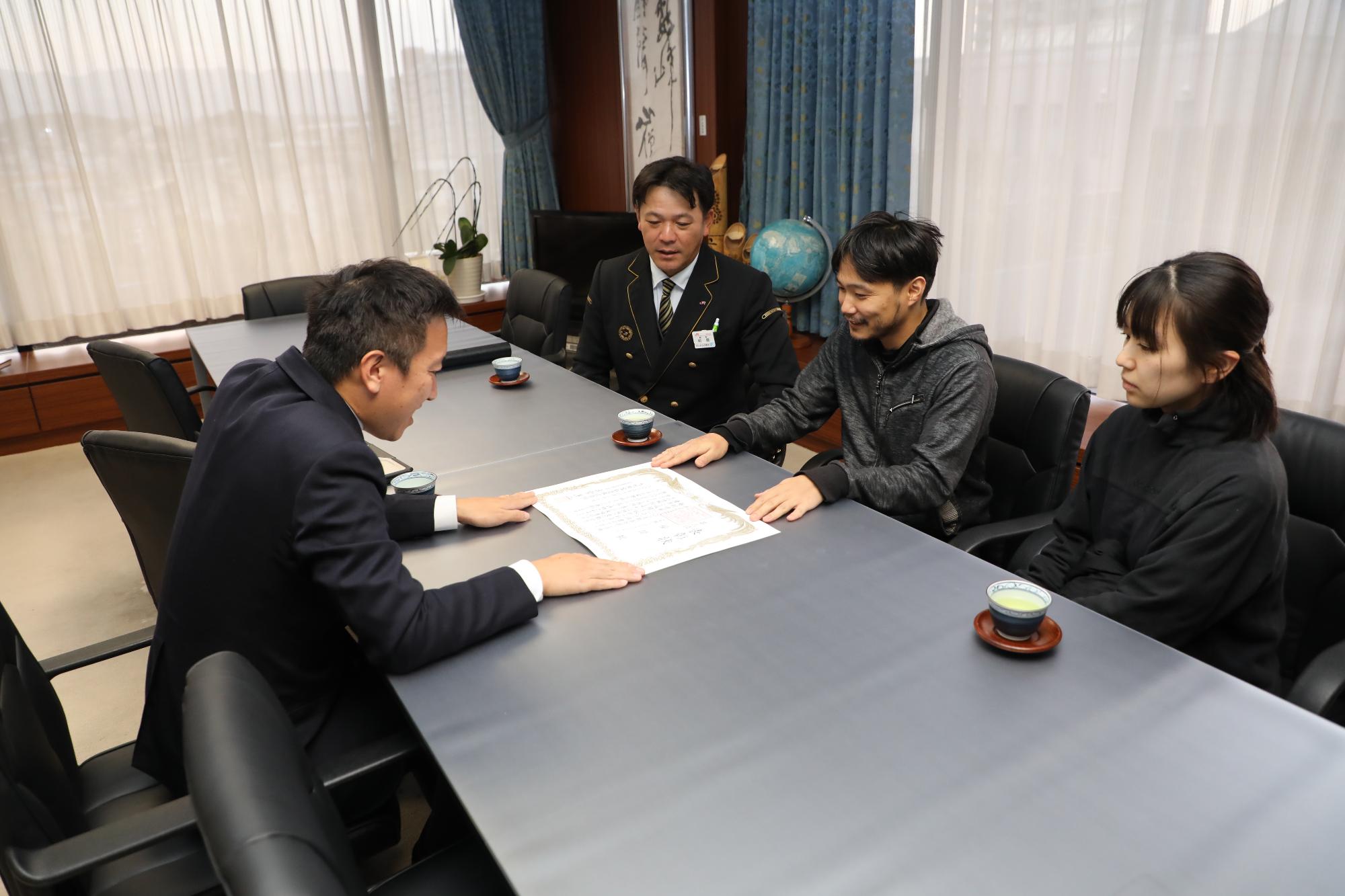 令和7年11月25日表敬訪問 完熟トマトラーメンが3位入賞