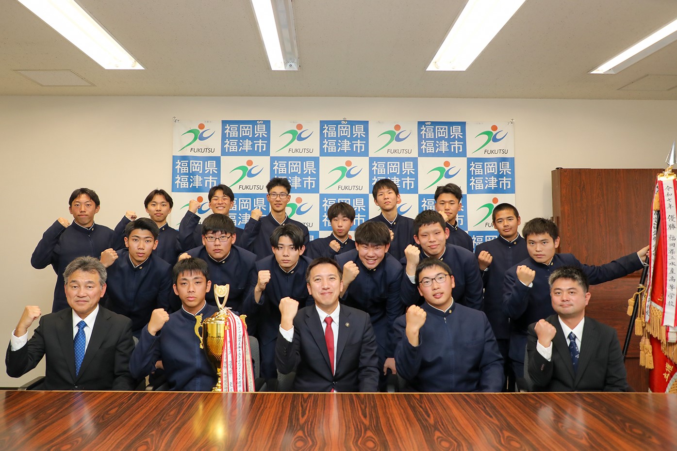 令和7年12月23日表敬訪問 県立水産高校カッター部が全国大会優勝
