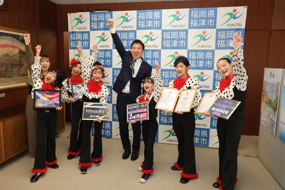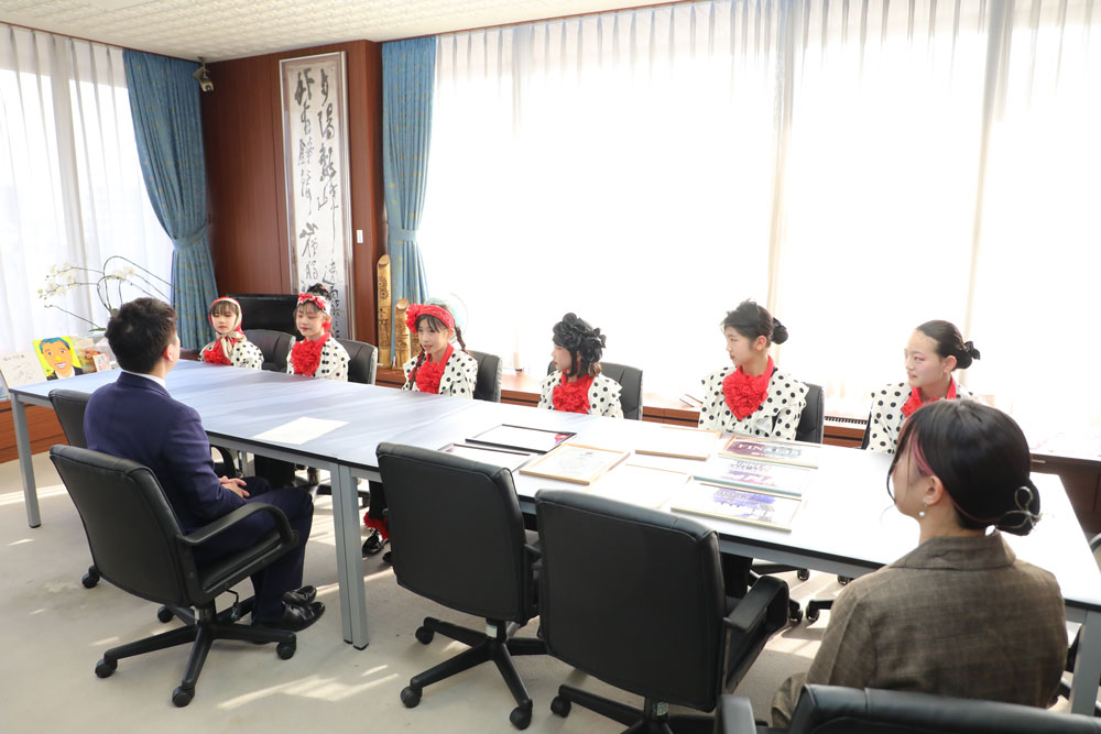 3月19日、市内の小学生が多数所属するダンススクール「吉留水産」の皆さんが、市役所を訪れてくださいました。
