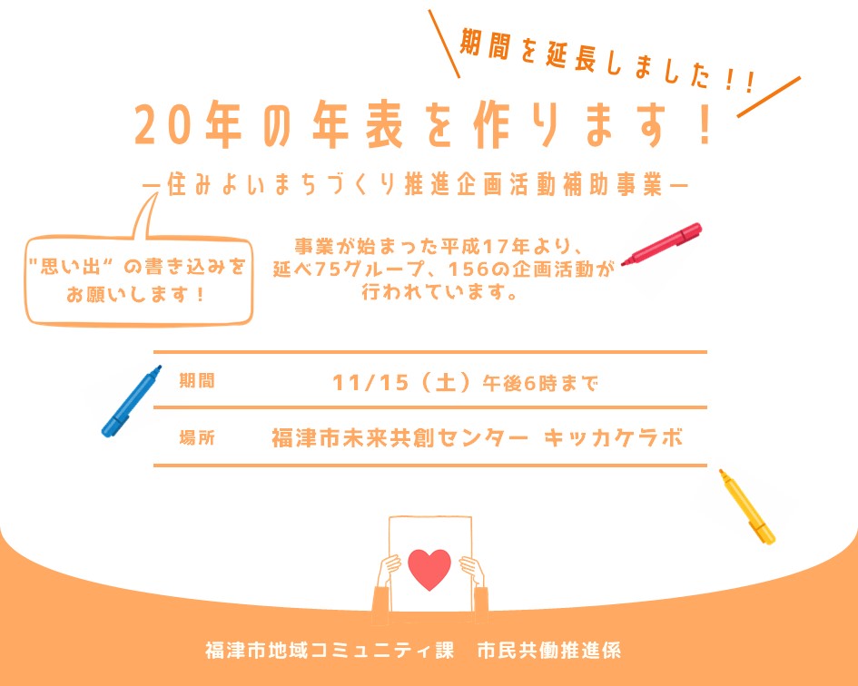 平成17年度から始まった、「住みよいまちづくり推進企画活動補助事業」の20年を振り返る「年表」を作成します!