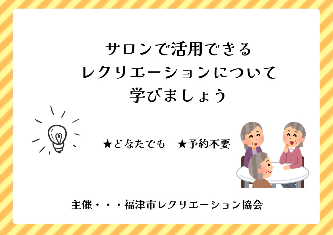 サロンで活用できるレクリエーション支援について学びませんか?〈参加者募集〉